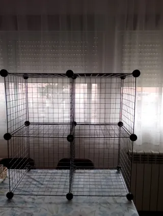 Práctica estantería modular de metal y plástico, ideal para organizar tus espacios. - Diseño de rejilla. - Fácil de montar.