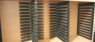 Estantería vertical para almacenar CDs. - 70 cds en vertical - Estructura de madera con compartimentos de plástico.