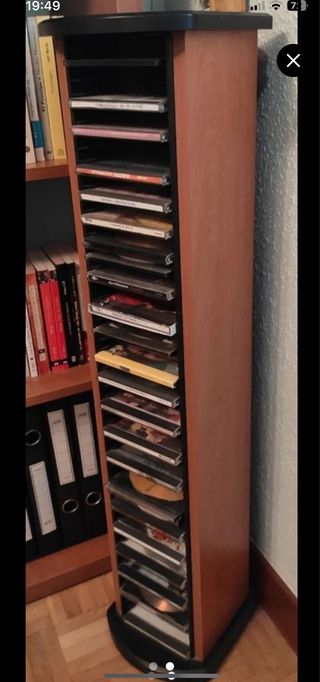 Estantería vertical diseñada para organizar CDs. ocupa poco espacio. Base cuadrada para mayor estabilidad. Recoger en Coruña