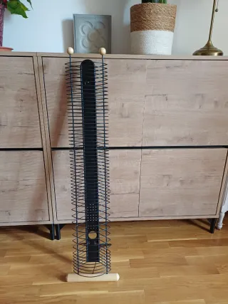 Elegante organizador de CDs fabricado en metal negro. Su diseño en espiral le da un toque moderno y funcional. - Material: Metal - Color: Negro - Diseño: Espiral No hago envíos