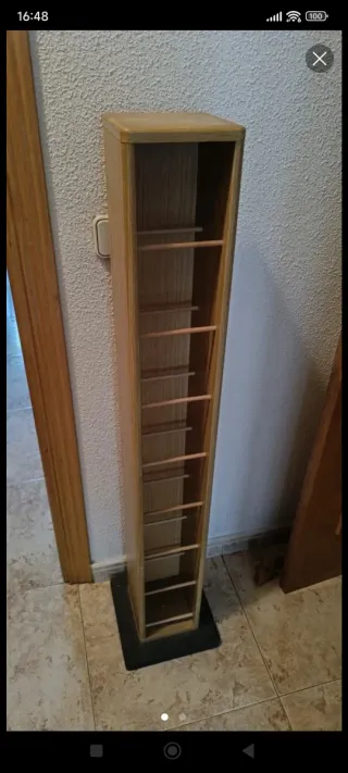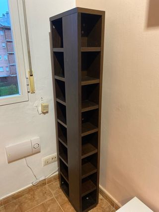 Estantería alta y estrecha, ideal para organizar CDs. - Diseño vertical. - Múltiples baldas para almacenamiento. - tengo dos unidades. Precio por unidad
