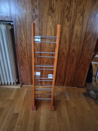 Práctico mueble para organizar tus CDs. - Estructura de madera. - Barras metálicas para los CDs.