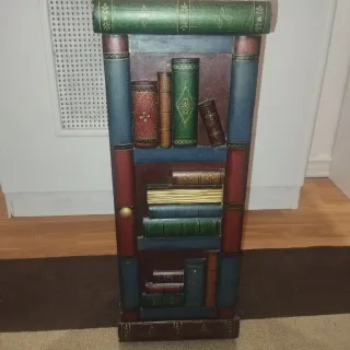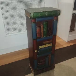 Original mueble con diseño de estantería de libros, perfecto para almacenar CDs. - Diseño decorativo que simula una colección de libros. - Acabado multicolor. - Fabricado en madera. Capacidad de 32CDs Precio no negociable
