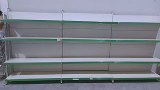 Se venden estanterías de supermercado, ideales para organizar tu negocio o almacén. - Longitud total de 20 metros. - Metálicas para mayor durabilidad.