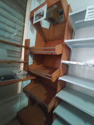 Se venden estanterías metálicas de comercio. Ideales para tiendas o almacenes. Han servido a tienda de electrodomesticos de 200 metros cuadrados de exposición, en buen estado. Estructura robusta de metal. Las góndolas y estanterías sin bandejas están desmontadas ya. LIQUIDACIÓN TOTAL PRECIO INMEJORABLE
