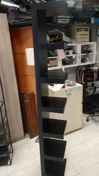 Estantería de diseño moderno con acabados en negro. Por 15€ Medidas: Alto x190 30x30 - Estructura robusta. - Múltiples baldas para almacenamiento. Puedes ir a verla, estamos en una tienda, en carrer de la lluna 25 08001, Barcelona. A 5 minutos caminando de plaça Universitat y a 12 minutos caminando desde plaça Catalunya. Abrimos de lunes a sábado de 10.30 a 21.30h. Domingo. De 12 a 21h También hacemos envíos, pregúntame.