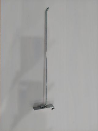 Set de ganchos de metal para colgar productos en tiendas, anclaje para rejilla de malla metalica. - Diseño alargado de 40cm y resistente. - Parte superior curvada para colgar. - Base con clip para fijación. - Cantidad 36 en excelente estado en total son 40 unidades. - Hay 4 con muestra de desgaste que no se cobran