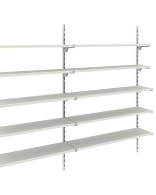 Conjunto de estanterías metálicas para tienda. - Estructura robusta. - Diseño modular. - Acabado en blanco y gris.