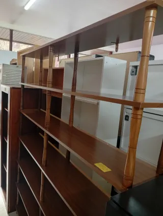 Estantería de madera con un acabado en tono marrón. Cuenta con varios estantes para organizar tus objetos. - Diseño de líneas rectas. - Marco angular en la parte superior. 🛍️ Tienda de artículos para el hogar – Segunda mano y nuevos 📍 Avinguda del Paral·lel, 114 – Barcelona 🕒 Lunes a sábado: 10:00 a 20:30 🚚 Transporte y envíos Realizamos envíos a domicilio dentro y fuera de Barcelona. 🔧 Servicios adicionales Carga y descarga Montaje y desmontaje 📞 Teléfono y WhatsApp: 645 362 526 Escríbenos sin compromiso.