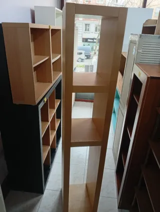 Estantería de diseño moderno y funcional. - Estructura de madera. - Múltiples baldas para almacenamiento. TRANSPORTE 20 EU Puede venir a verlos , Es una tienda , se llama Nuestra segunda mano . Carrer de la lluna 25 08001 , Barcelona . A 3 minutos caminando de placa universidad Es calle ancha , fácil para aparcar delante Hacemos envíos económicos pregúntame 631725223