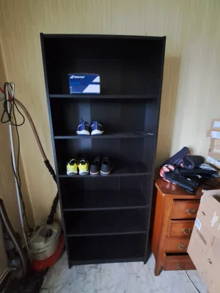 Estantería de madera de la marca Ikea, modelo BILLY. - Color negro. - Diseño moderno y funcional. - Preferible poder llevarla montada.