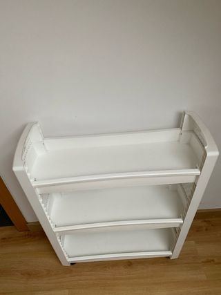 Práctica estantería de tres niveles. Dispongo de 3 iguales. - Diseño ligero y fácil de mover gracias a las ruedas. - Ideal para organizar espacios pequeños. - Bandejas con bordes para evitar caídas.