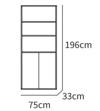 Estantería alta con dos puertas inferiores y baldas. Estantería práctica y sencilla en color madera con 3 estantes regulables en altura y dos puertas. Se vende montada tal y como está. -Medidas: 196 cm (alto) x 75 cm (ancho) x 33 cm (prof.) -Material: aglomerado de partículas y melamina de alta densidad