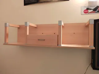 Estantería de madera con un cajón extraíble. - Diseño moderno y funcional. - Acabados en madera clara. - Estructura con soportes metálicos. Regalo escritorio haciendo juego, por si a alguien le interesa.