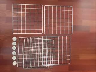 Sistema de estantería modular con paneles de rejilla, fácil de montar y desmontar. Rejillas paneles desmontables para formar estructuras personalizadas, ideal para artist Alley,estantes, zapateros, almacenamiento, jaulas para cobayas/conejos etc usado unas 5 veces, casi nuevo Cuenta con 38 paneles y 42 conectores también vendo 19 paneles y 21 conectores por 15€ precio negociable!! entrega en mano en murcia o envíos💝💝