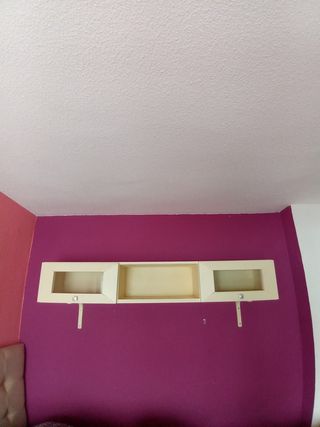 Estantería de pared de plástico, color blanco. Es compacta y sencilla. - Ideal para espacios pequeños. - Fácil de instalar.