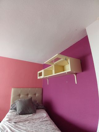 Oferta en dormitorio juvenil, compuesto por 2 camas completas de 1,90x90 cm (incluidos colchones y somier) con cajoneras medianas y grande, estantería y sinfonie, más escritorio con cajonera para calzado. Regalo perchero Un verdadero chollo