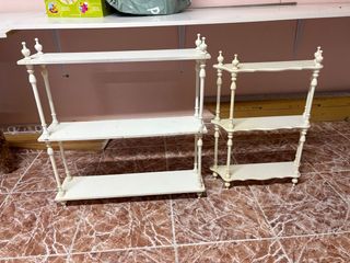 Preciosas estanterías de madera, ideales para una habitación infantil. Se venden las tres juntas. Son de color blanco y tienen un diseño de soporte en forma de V. - Perfectas para decorar una habitación infantil. - Diseño elegante y sencillo. -Son de 3 tamaños diferentes.