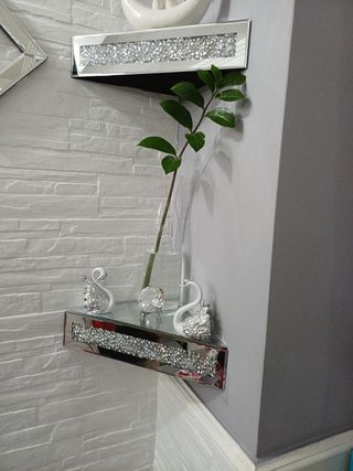 Elegante estantería con un diseño moderno y llamativo. - Acabado en cristal y brillantes - Detalles brillantes que aportan un toque de lujo. El precio es por las dos...