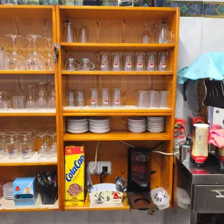 Estanterías de madera con detalles en cristal. Sus medidas son 1,20 metros de alto, 0,64 metros de ancho y 0,22 metros de fondo. - Estructura principal de madera. - Estantes de cristal.