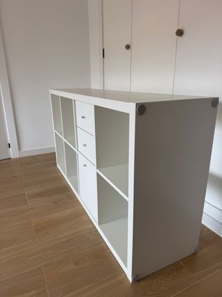 Estantería modular Kallax de Ikea en color blanco. Ideal para organizar y almacenar. - Diseño de 8 cubos. - Se puede colocar en vertical u horizontal. Tiene una pequeña rozadura tal y como se aprecia en una foto.