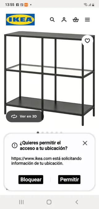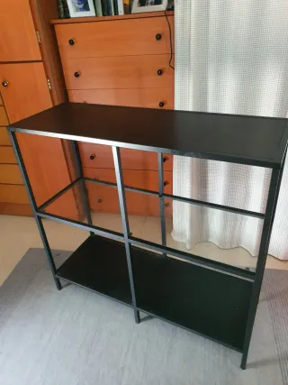 Estantería moderna de IKEA, perfecta para organizar tus espacios. - Diseño elegante en metal negro. - Estantes de cristal resistentes.