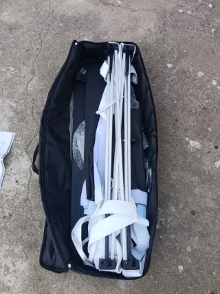 Este mostrador portátil es ideal para eventos o exposiciones. Se pliega fácilmente para su transporte y almacenamiento. - Estructura de metal y plástico. - Color negro y plateado.