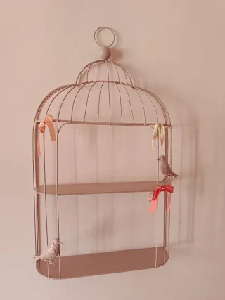 Estantería jaula decorativa metal dorada/rosa
