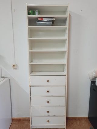 Estantería blanca Ikea ideal para entradita o pasillo, incluye cajones de madera(se compraron aparte). Medidas: 99 largo, 37 profundidad, alto 1,30 recogida en Badajoz ciudad. No se hacen envíos.