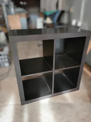 Estantería modular de cuatro cubos en acabado negro. - Diseño moderno y versátil. - Ideal para organizar libros, decoración o juguetes. - Estructura robusta. 2 unidades disponibles, precio por las 2 55€ Recogida en Villar del Rey