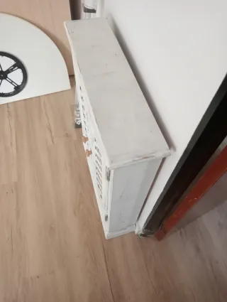 Mueble auxiliar tipo estantería con un diseño moderno: *Precio negociable -Buena calidad, grosor amplio del material. - Estructura principal en madera. - Paneles interiores en color blanco. - Dos baldas de madera para almacenamiento. Estado excelente 👍🏻