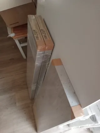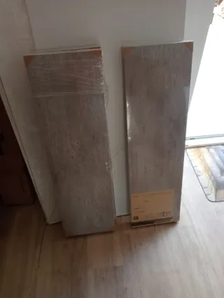 Se venden baldas de herrajes ocultos de madera con un diseño moderno. Nuevas a estrenar empaquetadas 1 unidad 9 euros 2 unidades 16 euros 3 unidades 23 euros - Acabado en tonos grises y cemento. - Ideales para estanterías o decoración.