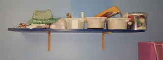 Conjunto de estanterías de madera maciza. - Material: Madera maciza. - Color: Tonos beige y marrón. se venden por separado al precio de 4€ cada una si quieres más de una, hablamos el precio. la pequeña 3€ madera buena. no son de ikea. a recoger en centro de Badalona