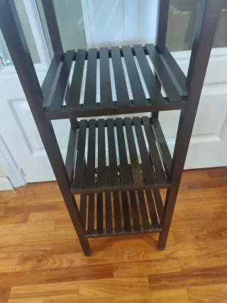Estantería de madera en color marrón oscuro. Ideal para organizar cualquier espacio de tu hogar. - Perfecta para colocar libros, plantas u objetos decorativos. - Diseño sencillo y elegante. - Se encuentra en buen estado.
