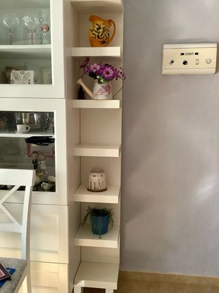 Estantería de pared de la marca Ikea. Su diseño moderno y minimalista se adapta a cualquier espacio. - Estructura blanca. - Materiales variados.