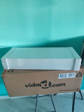 Vendo estante de pared blanco con cajón totalmente nuevo a estrenar, precintado y en su caja original. Medidas 60x23,5x10cm. Precio en Leroy Merlín 138,95€, en Amazon 101,99€ (comprobar en fotos) y en tienda física en Ceuta 280€. La vendo por 60€ ya que compré 2 unidades y solo instalé 1 en casa, en las fotos se encuentra la que tengo instalada en casa.