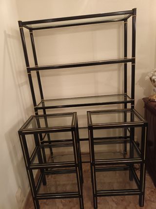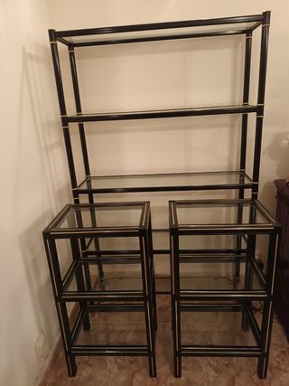 Juego d estanterías en negro dorado lejas cristal