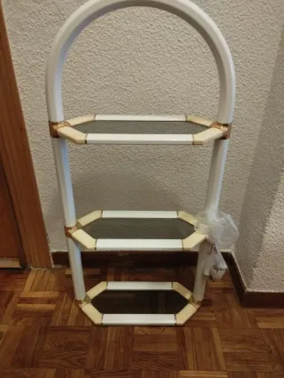 Elegante estantería con estructura metálica y baldas de cristal. - Diseño moderno y funcional. - Acabado dorado brillante. - Tres niveles de almacenamiento. Recogida en domicilio