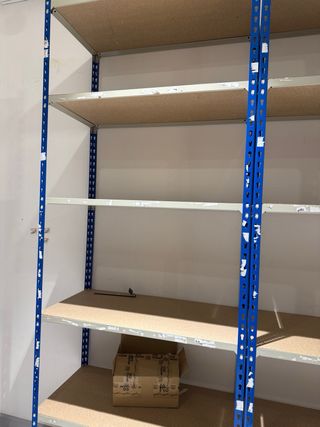 Conjunto de estanterías metálicas modulares, ideales para organizar espacios de almacenamiento. - Estructura robusta de metal. - Tableros de madera. - Diseño adaptable a diferentes configuraciones.aproximadamente entre 40 a 50cm de fondo alto aprox. 240cm ancho sobre 1 m. cada una 45€. tengo 8 unidades