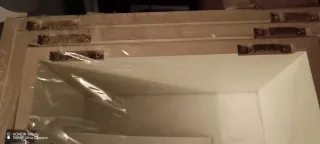 Se venden muebles de estantería. - Estructura blanca. - Diseño con greca. - Estantes interiores.