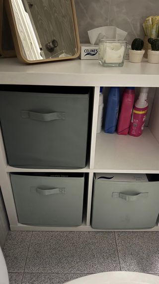 Práctica estantería de 12 cubos metalicos, ideal para organizar tus pertenencias. Cada cubo mide 30 x 30 x 30 cm y soporta 10 kg. Tiene menos de un año y está nueva, la montamos y no se ha usado. Precio original 40€. Se entrega desmontado