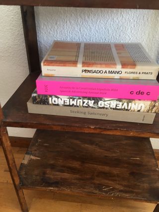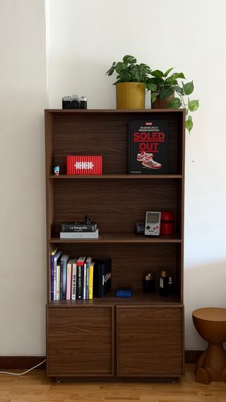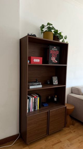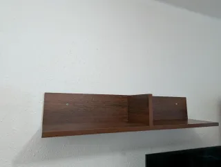 Estantería de pared con soportes como la de la foto, pero sin estrenar. Venían 2 con el mueble, pero solo he puesto una. Color wengué.