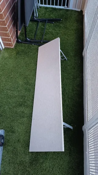 * Mesa de comedor blanca 90x90cm y tiene dos partes extensibles de 39cm. En total hace 168cm. Presenta desgaste en la parte inferior de las patas. Precio: 30€ * Estantería Vilto de abedul de 46×150cm y 5 baldas.En perfecto estado. Precio 50€ * Espejo de pie. Precio: 12€ * Espejo decorativo. Precio: 8€ Guardado todo en guardamuebles Bluespace, Cornellá del Llobregat
