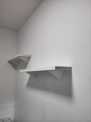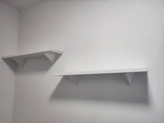 Se venden dos estanterías de madera, cada una con sus escuadras de soporte. - Material: Madera - Color: Beige