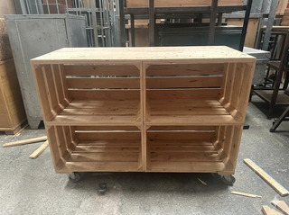 Estanterías modulares hechas con palets, ideales para tiendas o almacenes. 3 colores - Estructura robusta de madera. - Combinación de colores marrón,verde y negro 4 estantes Hecho a mano, base 3 palets