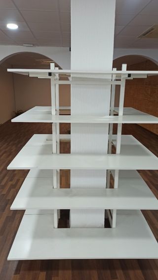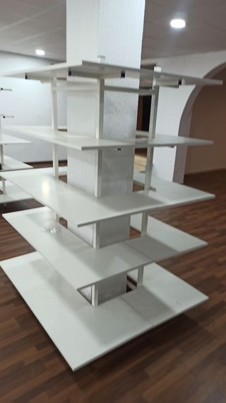 Preciosa estantería de metal, ideal para tiendas de ropa u otros negocios. Se encuentra en buen estado. Tengo varias. - Perfecta para exhibir mercancía. - Diseño limpio y moderno. - Incluye varios módulos de estantes y una base. Precio negociable