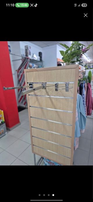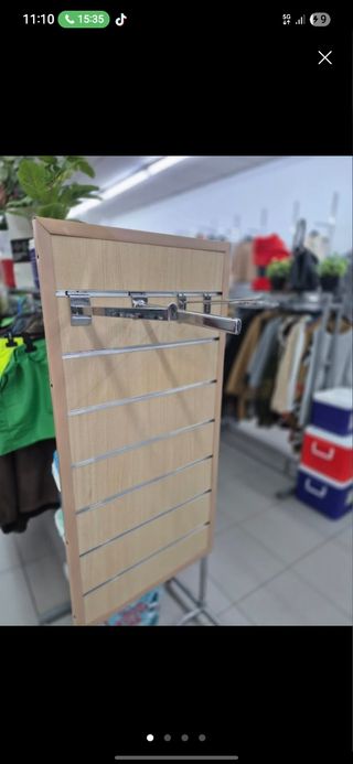 Panel expositor en buen estado, ideal para tiendas. - Perfecto para organizar ropa u otros artículos. - Diseño elegante y funcional. - Incluye dos barras metálicas para colgar prendas. - Medidas: 120 altura sin el expositor (160cm) - 60 cm