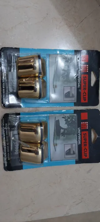 Set de 4 soportes para estantería, con un acabado dorado brillante. Son ajustables y versátiles. - Diseño universal. - Aptos para madera o cristal.
