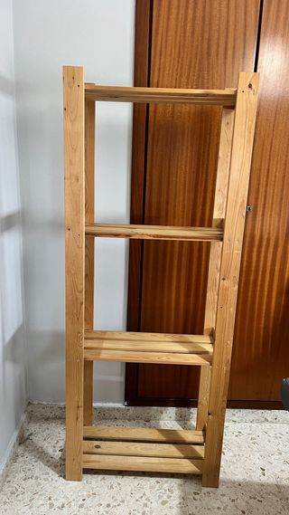 Estantería de madera con varios estantes. - Estructura robusta. - Diseño sencillo y funcional. Medidas: Ancho 80cm Fondo 26cm Alto 120cm Ubicado en el puerto de Santa María Precio totalmente negociable Si te interesan más cosas no dudes en visitar mi perfil