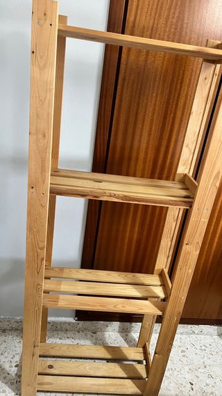 Estantería de madera de Ikea. Tiene algunas marcas y arañazos del uso. Se puede lijar y pintar al ser de madera.
